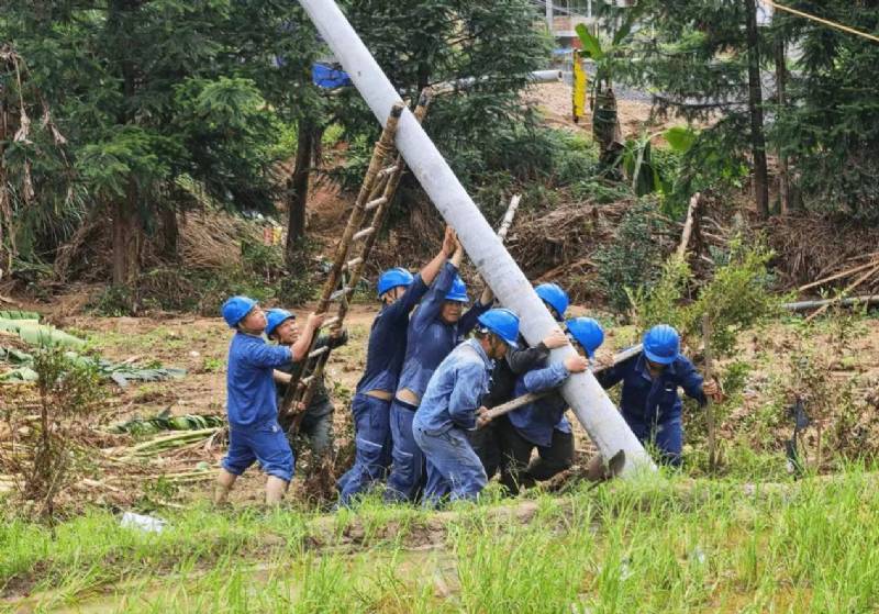 6月19日晚上,市投控集團下屬企業(yè)揭陽明利綜合能源發(fā)展有限公司落實上級工作部署,對接梅州市供電局,派駐先遣隊火速趕赴平遠縣泗水鎮(zhèn)開展抗災搶險復電工作。先遣隊在道路受阻難行,存在山體滑坡等自然災害風險的情況下,克服了道路不通、河流阻道、淤泥厚重等困難,不怕艱辛,主動作為,在惡劣作業(yè)環(huán)境作業(yè)中,發(fā)揮國企在應急搶修工作中展現(xiàn)責任擔當和鐵軍精神,采取人工搬運電力物資、人工立桿等方式,通過多日連續(xù)奮戰(zhàn),6月27日上午圓滿完成支援梅州抗災搶修復電工作任務(wù)。