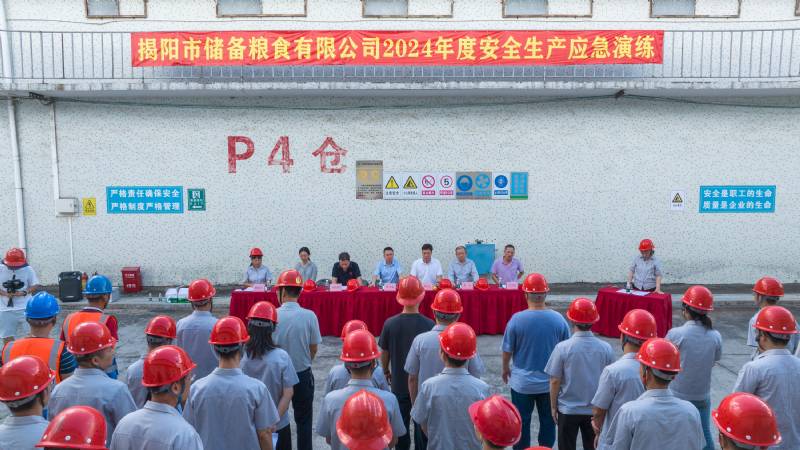 市投控集團黨委副書記、總經(jīng)理孔令寬同志強調(diào),安全生產(chǎn)責任重于泰山,市儲備糧食公司要深入貫徹落實習近平總書記關于安全生產(chǎn)工作的重要指示精神,堅決扛牢安全生產(chǎn)政治責任,切實加強應急避險、應急救援的聯(lián)動性和實戰(zhàn)能力,營造安全穩(wěn)定的環(huán)境,為揭陽市糧食安全儲備保駕護航。