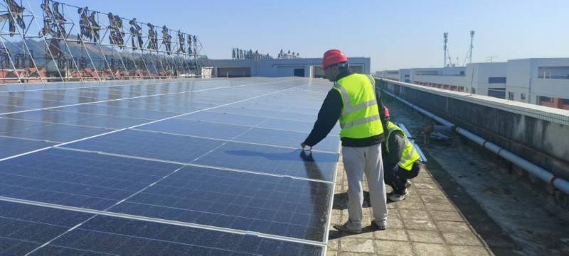 在“屋頂光伏”項(xiàng)目現(xiàn)場,項(xiàng)目團(tuán)隊(duì)放假不放工,春節(jié)期間堅(jiān)守崗位,確保工程建設(shè)不停工,春節(jié)期間共新進(jìn)場11處。